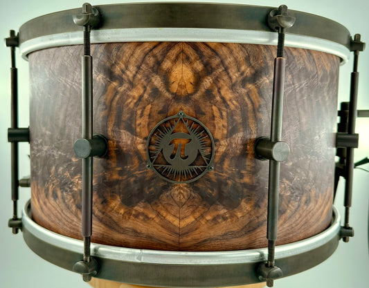 Pi Drum Company Feathered Walnut over Maple 14"x8" Snare