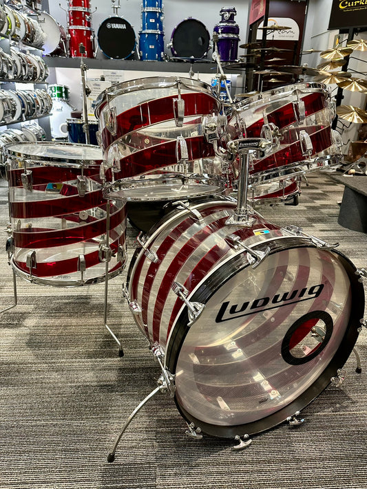 Ludwig 1970s Pattern C Spiral Red and Clear Vistalite 5-Piece Kit