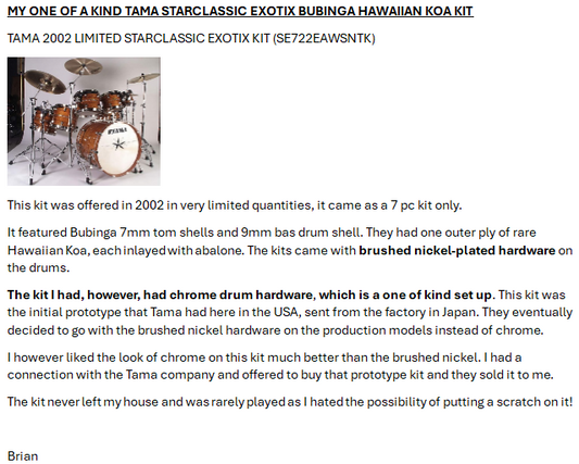 Tama Starclassic Exotix 2002 7-Piece Drum Set