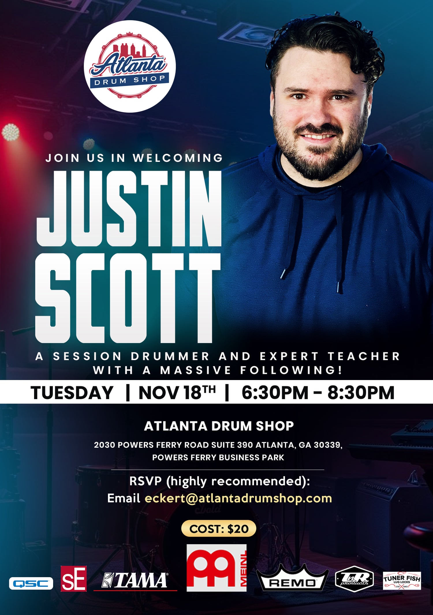 email eckert@atlantadrumshop.com for tickets. SEATING IS LIMITED!