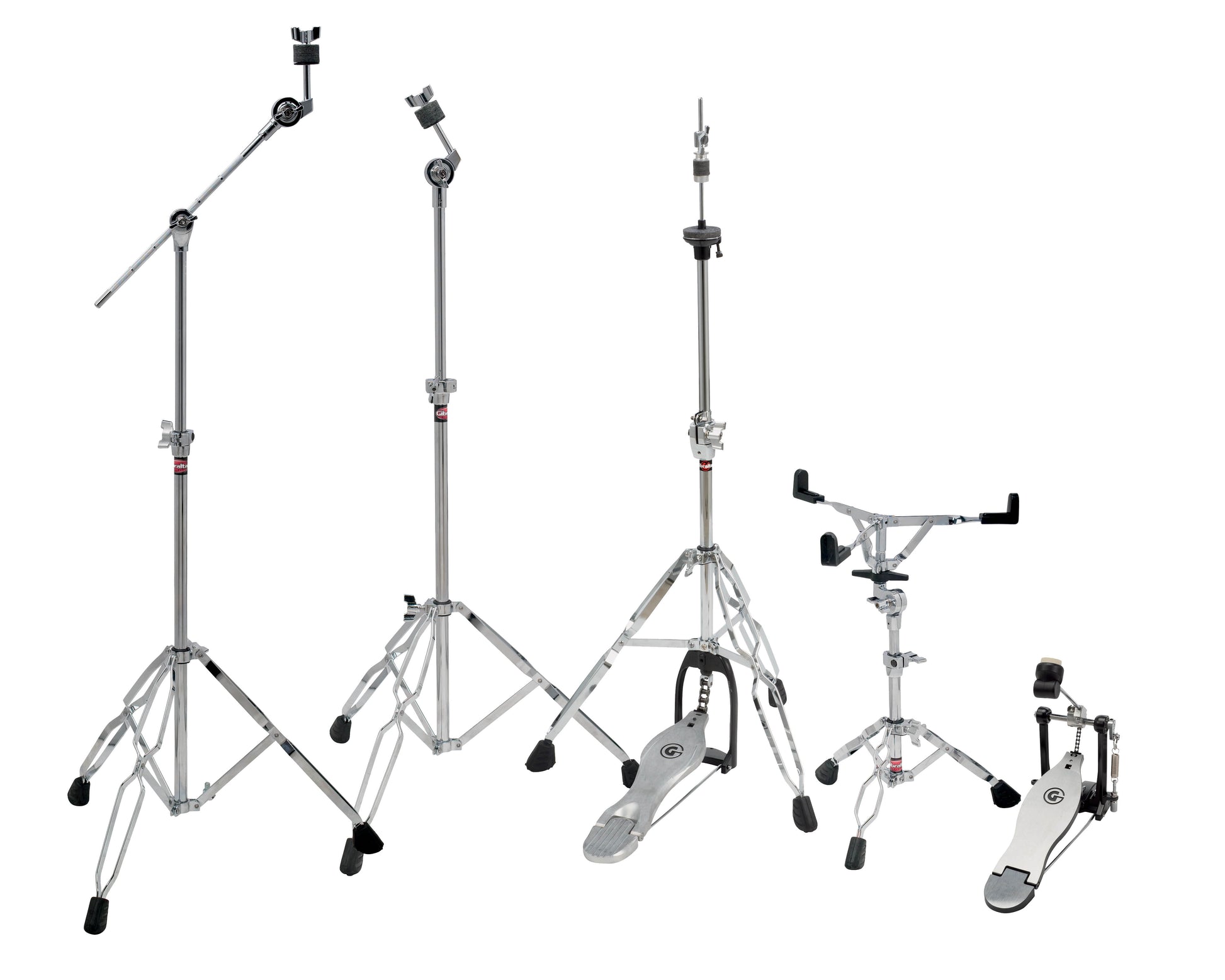 This five-piece hardware pack features double braced stands for extra stability. It has everything you need for gigging around town, including two Drum & Cymbal Stands, a hi-hat stand, snare stand and a single pedal. · Light weight hardware pack · Double braced tripod stands · (1) Single-chain drive single pedal. (1) Straight cymbal stand. (1) Boom cymbal stand. (1) Hi hat stand. (1) Snare stand. · Low mass
