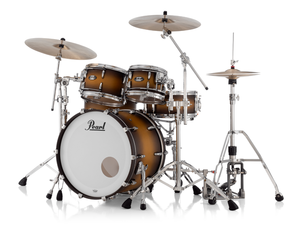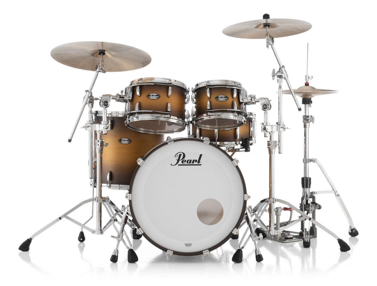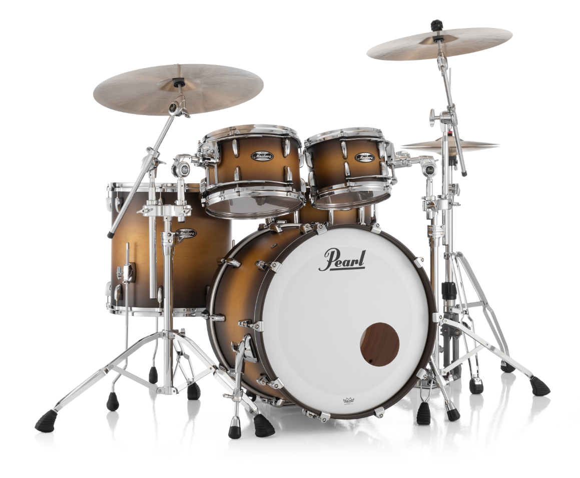 Pearl Masters Maple 4 Piece Shell Pack Featuring 22"x16", 16"x16", 12"x8", 10"x7" Drums in Matte Olive Burst with R2 Air Tom Suspension System with 7/8" Standard Bracket