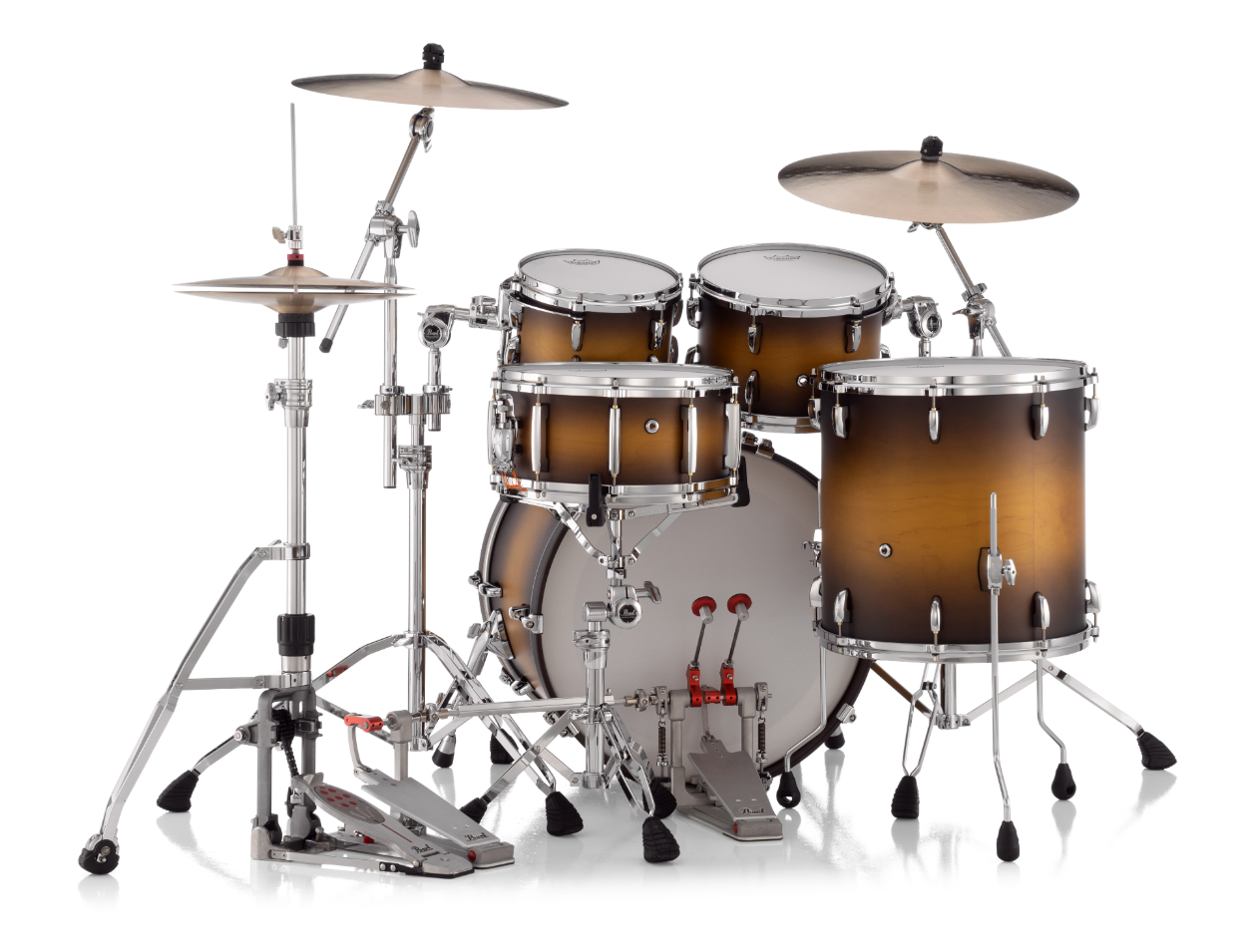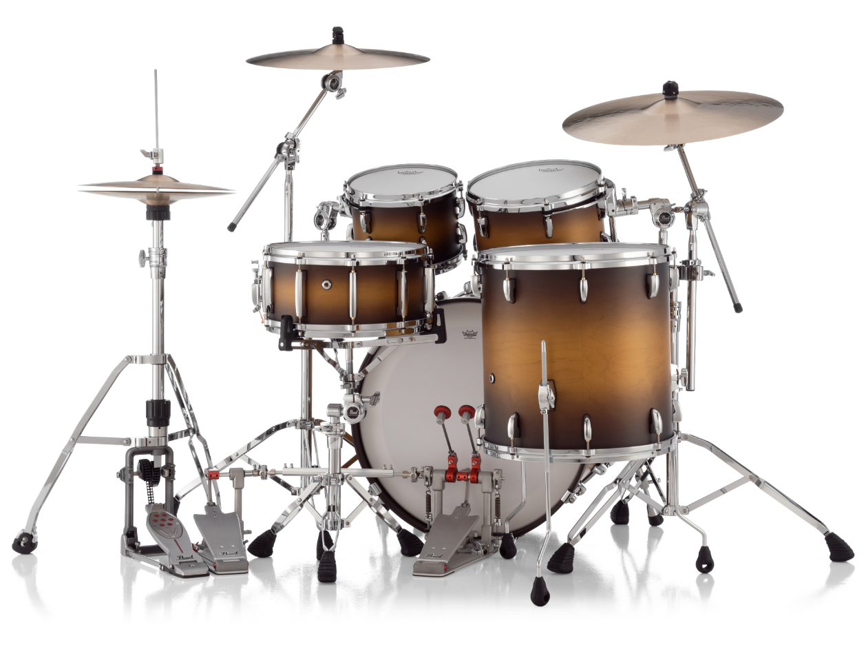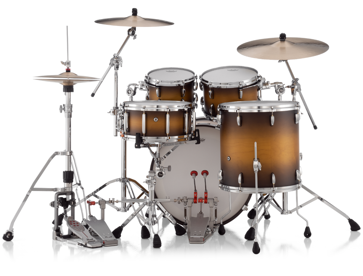 Pearl Masters Maple 4 Piece Shell Pack Featuring 22"x16", 16"x16", 12"x8", 10"x7" Drums in Matte Olive Burst with R2 Air Tom Suspension System with 7/8" Standard Bracket