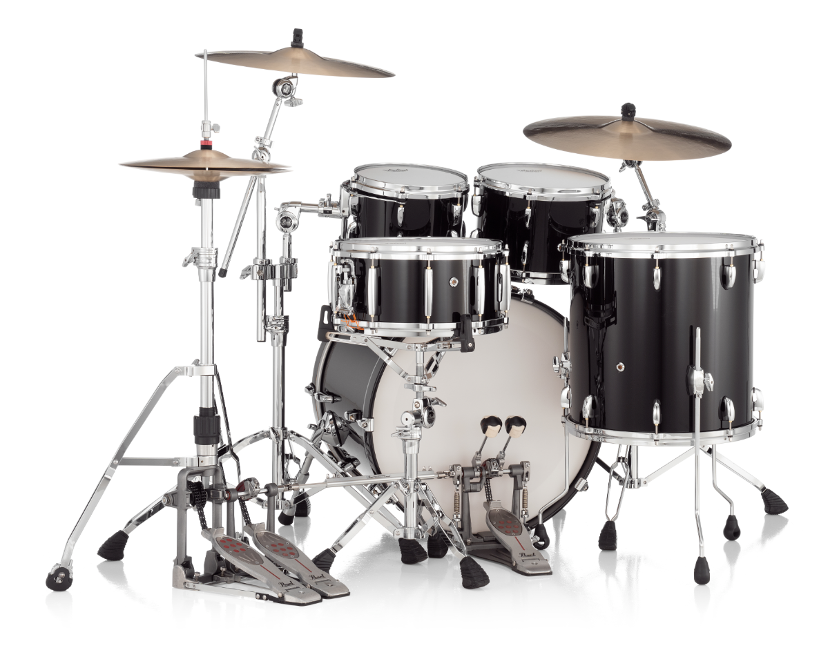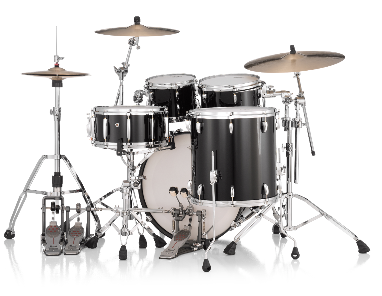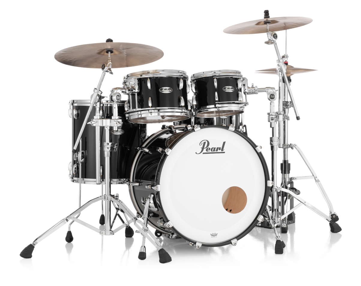 Pearl Masters Maple 4 Piece Shell Pack Featuring 22"x16", 16"x16", 12"x8", 10"x7" Drums in Piano Black with R2 Air Tom Suspension System with 7/8" Standard Bracket