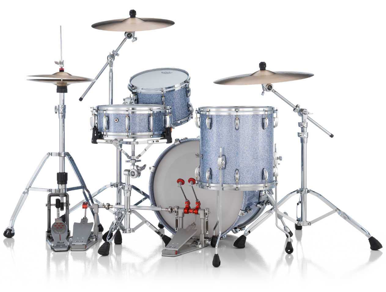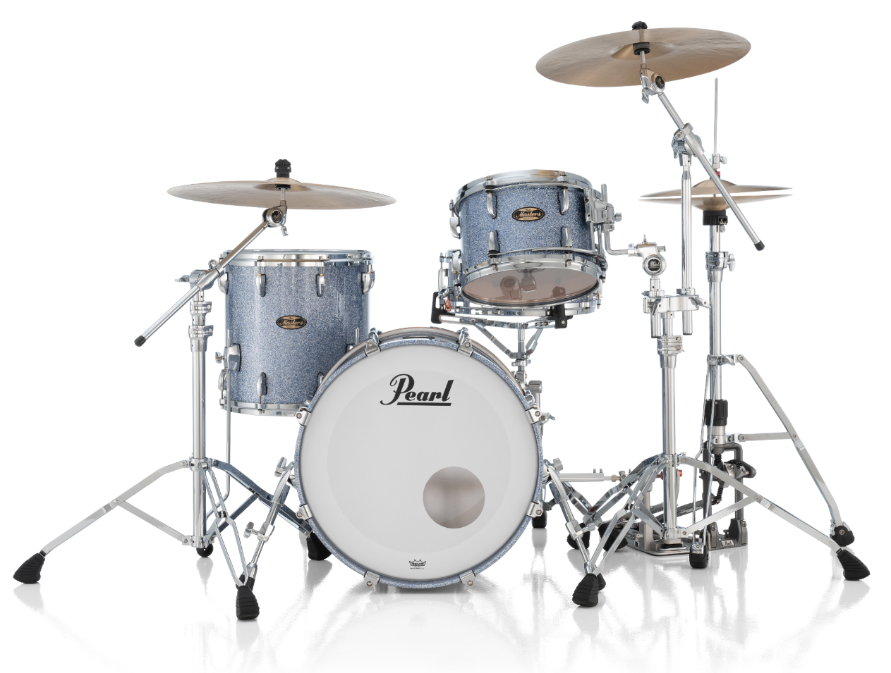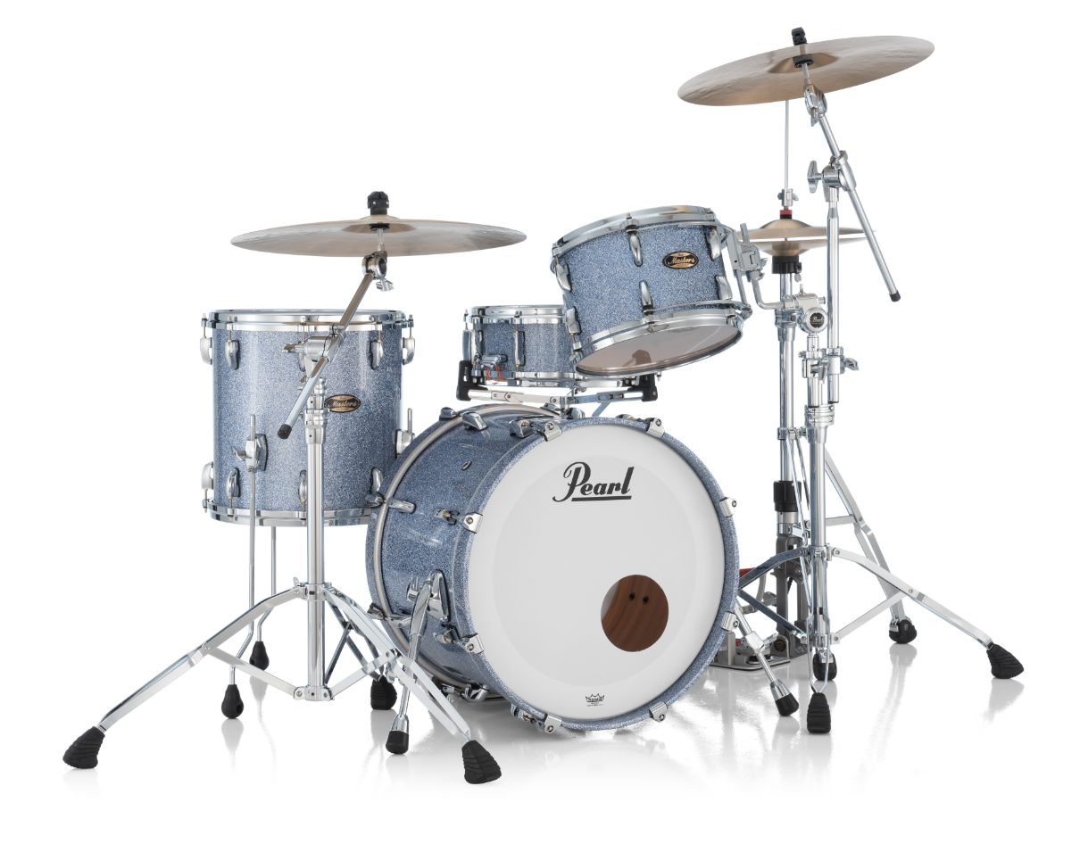 Pearl Masters Maple Gum 3 Piece Shell Pack Featuring 20"x14", 14"x14", 12"x8" Drums in Crystal Rain with R2 Air Tom Suspension System and a 12mm Gyrolock-L Bracket