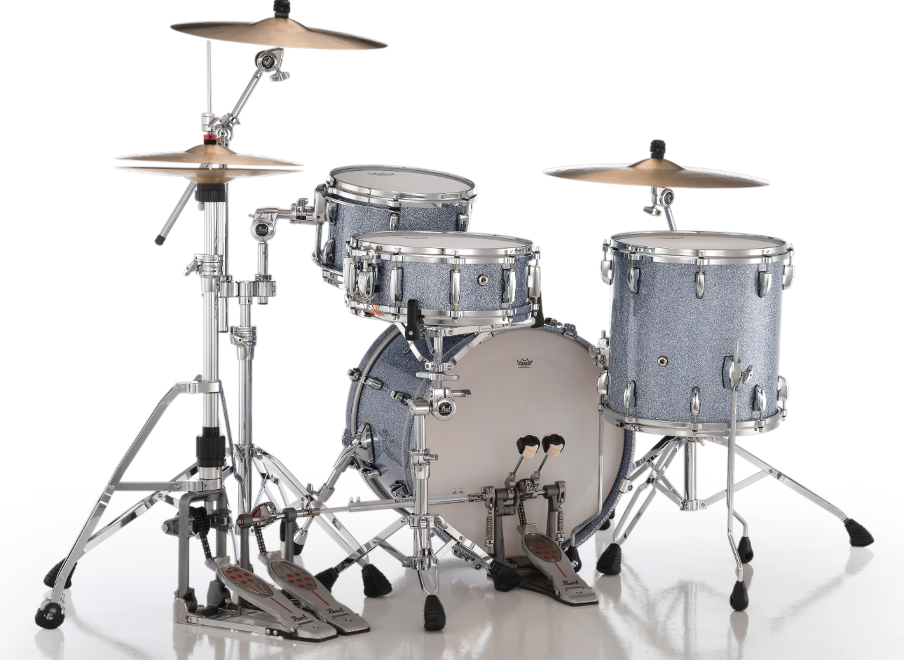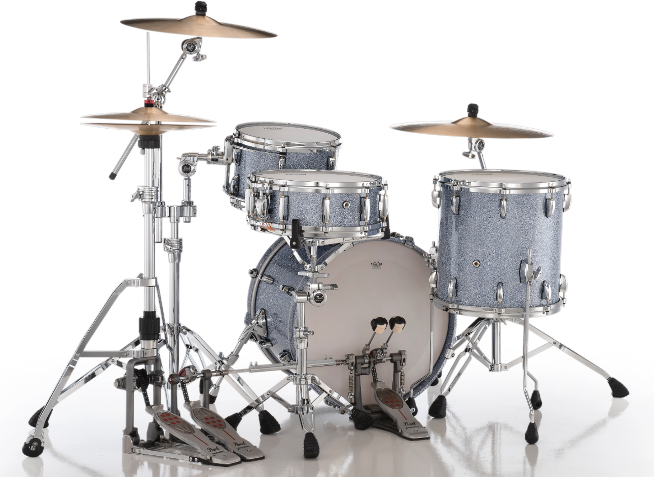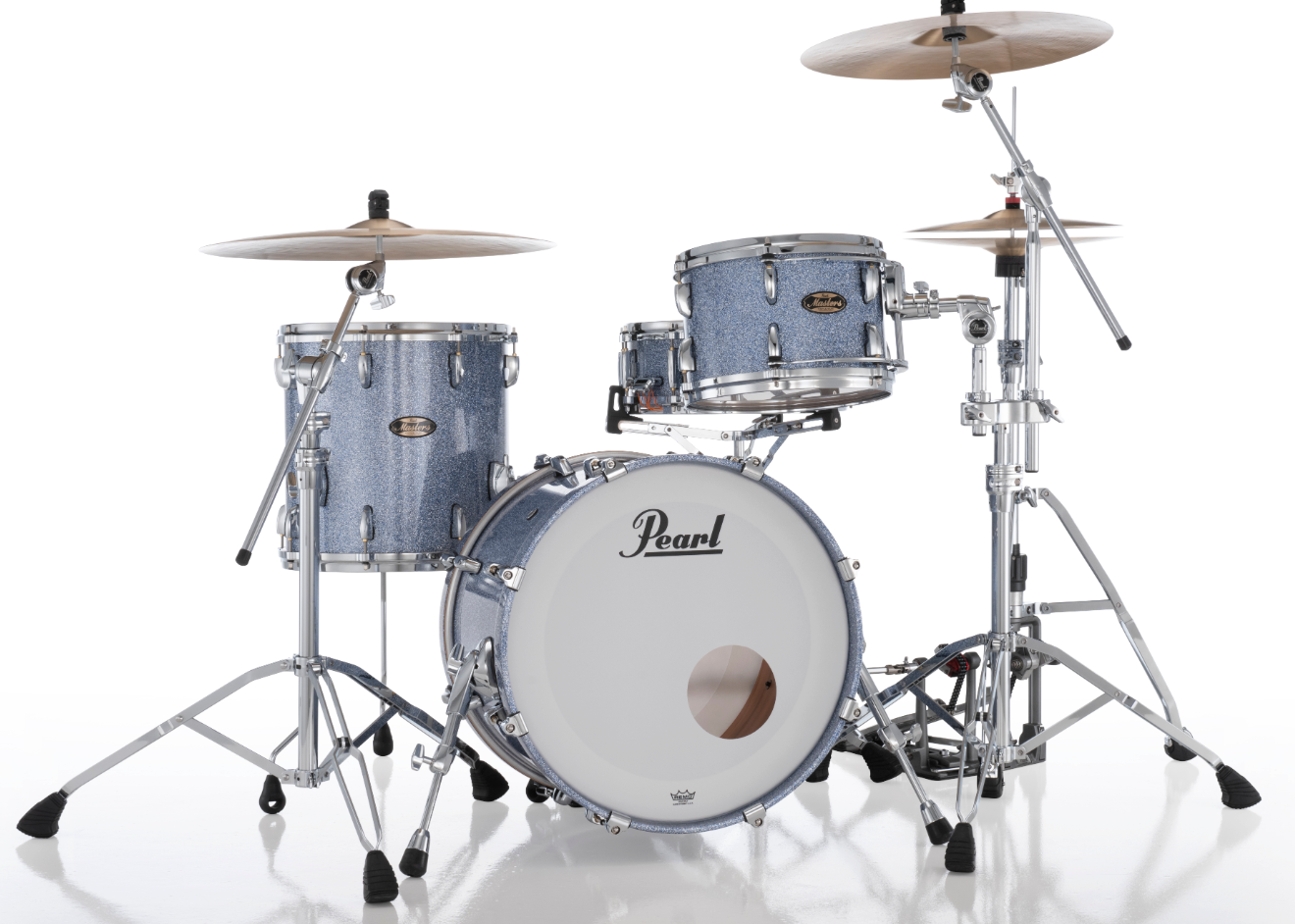 Pearl Masters Maple Gum 3 Piece Shell Pack Featuring 20"x14", 14"x14", 12"x8" Drums in Crystal Rain with R2 Air Tom Suspension System with 7/8" Standard Bracket