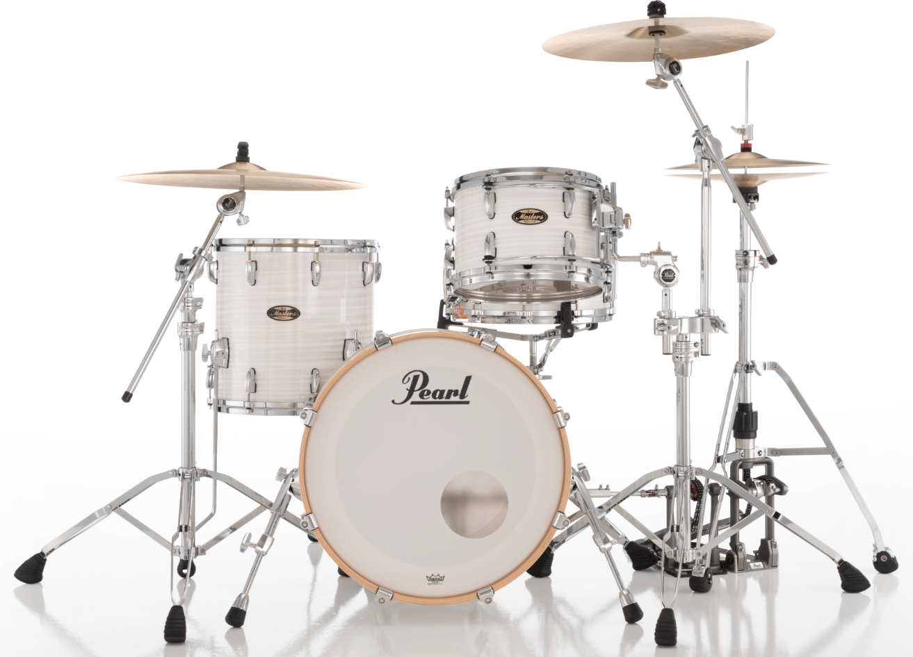 Pearl Masters Maple Gum 3 Piece Shell Pack Featuring 20"x14", 14"x14", 12"x8" Drums in White Ice Swirl with R2 Air Tom Suspension System and a 12mm Gyrolock-L Bracket