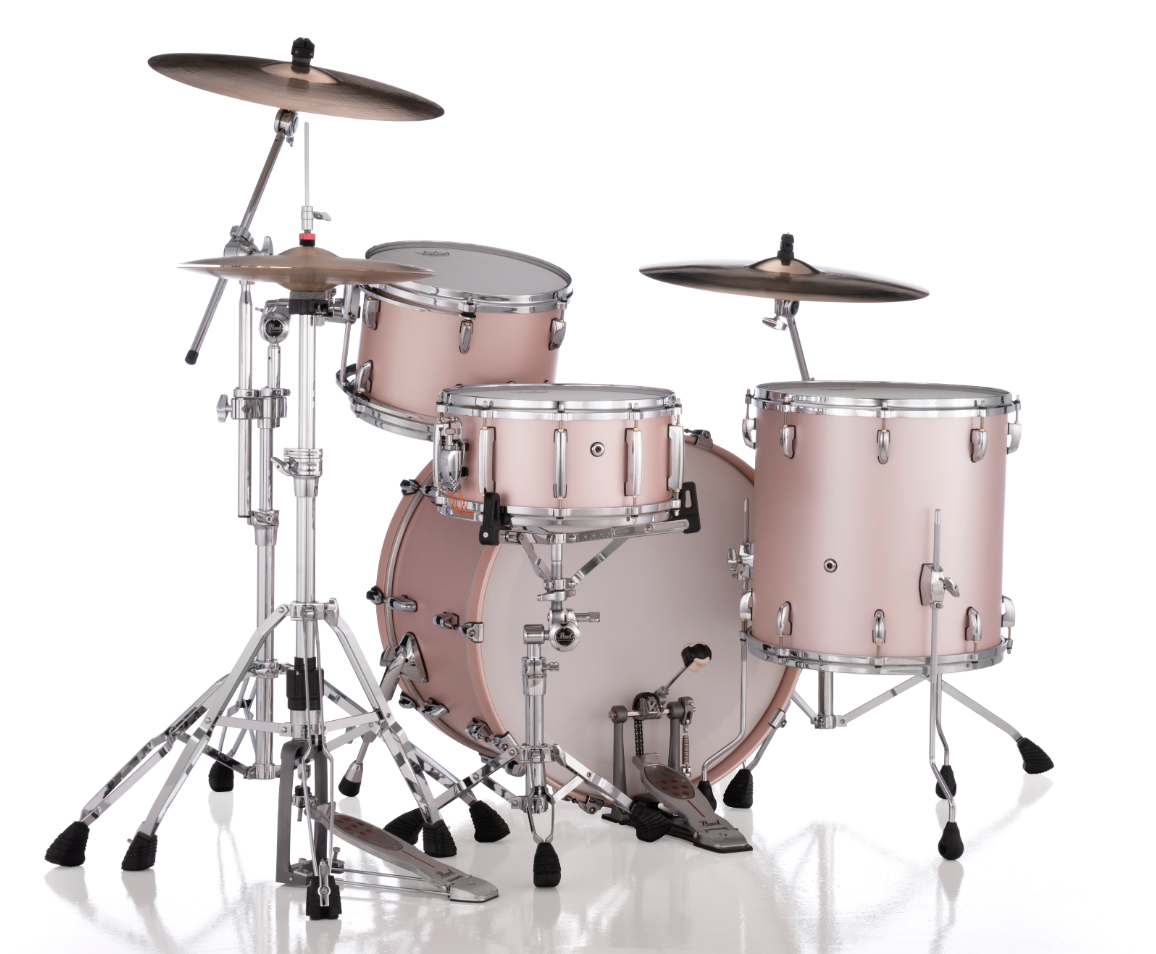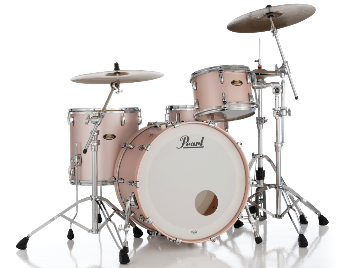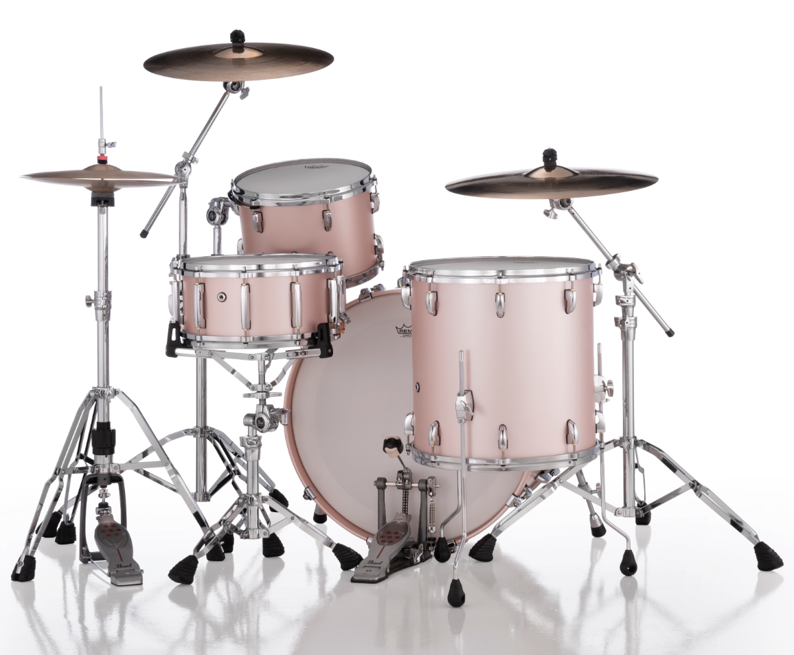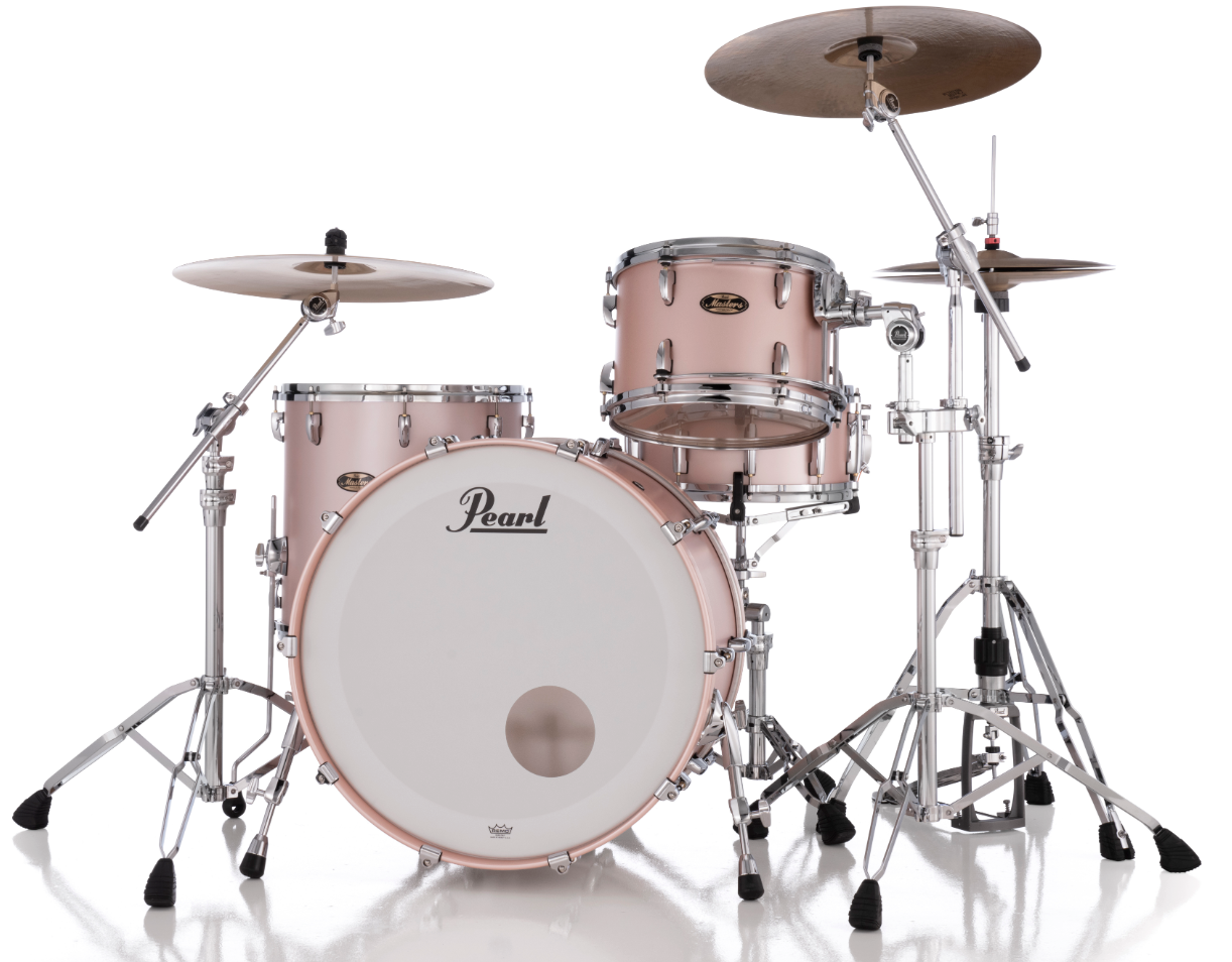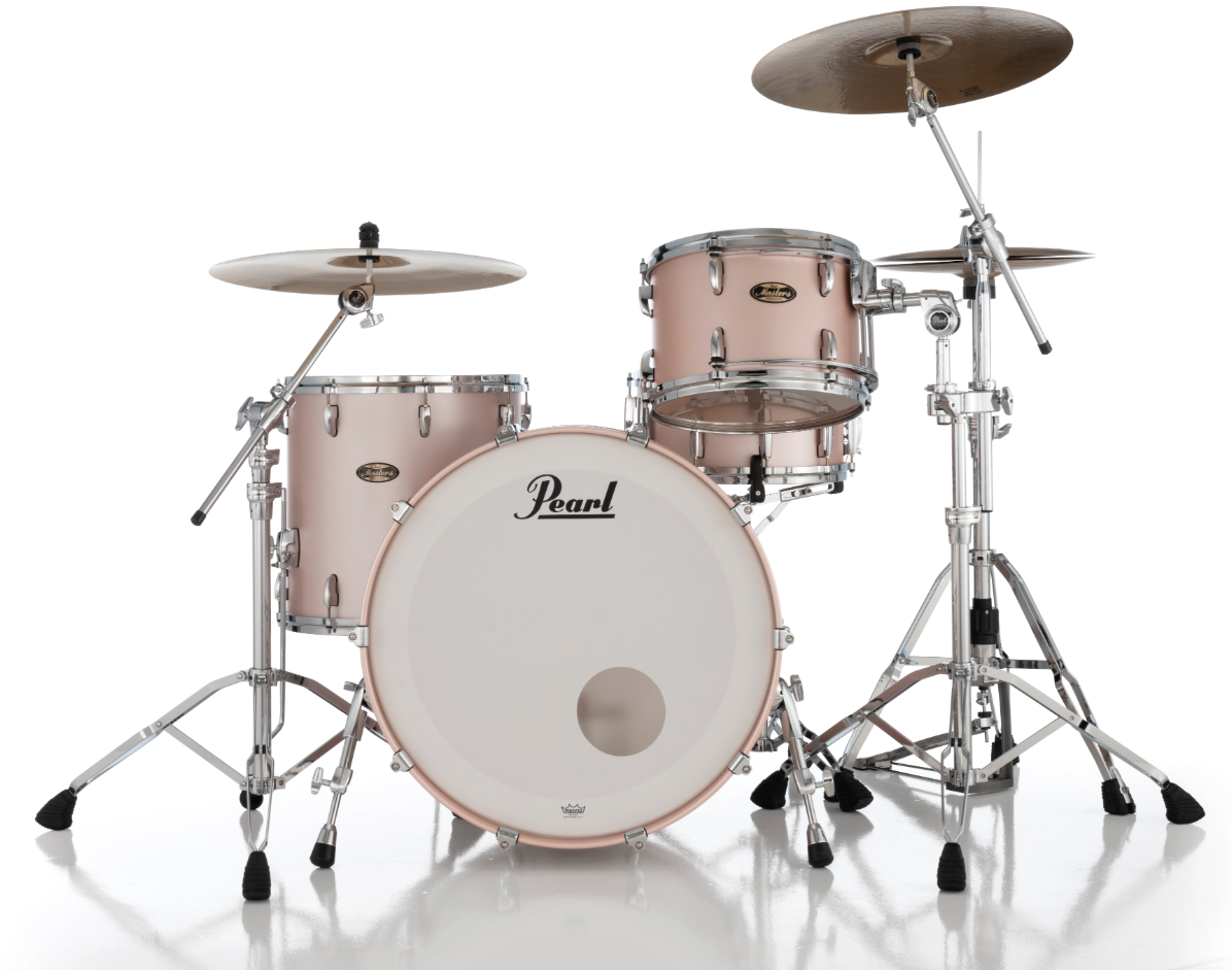Pearl Masters Maple Gum 3 Piece Shell Pack Featuring 24"x14", 16"x16", 13"x9" Drums in Satin Rose Gold with R2 Air Tom Suspension System with 7/8" Standard Bracket