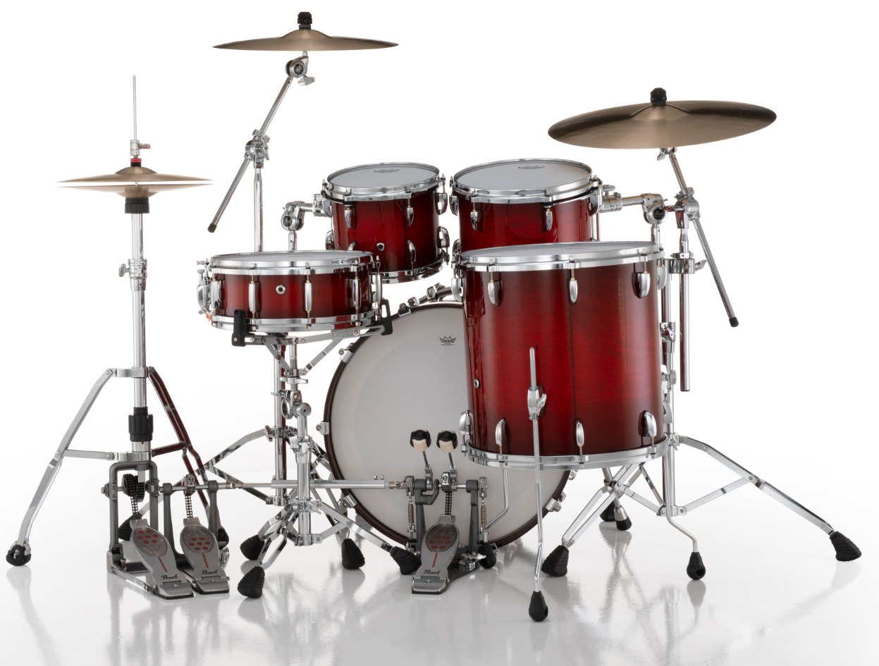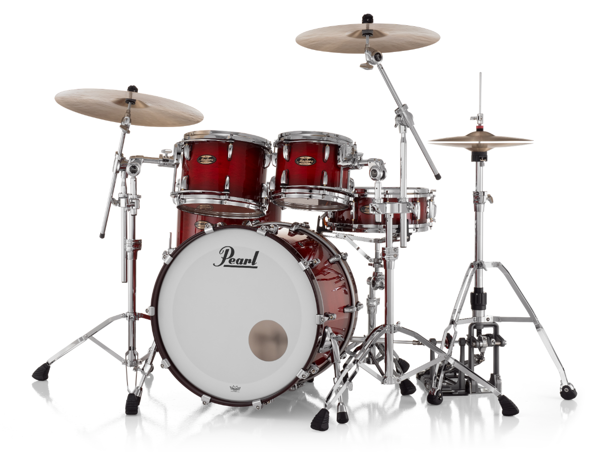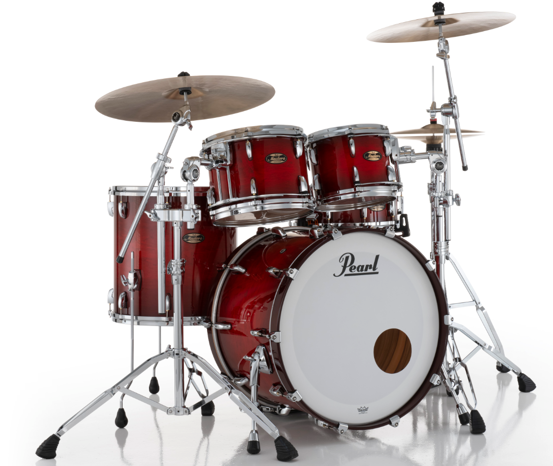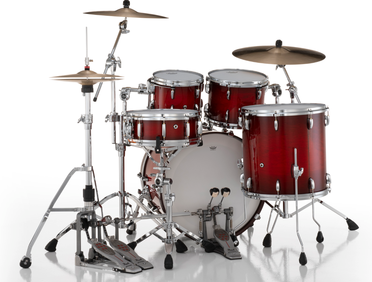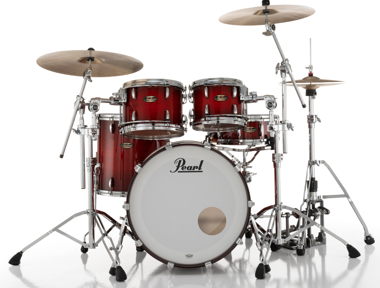 Pearl Masters Maple Gum 4 Piece Shell Pack Featuring 22"x18", 16"x16", 12"x9", 10"x8" Drums in Deep Redburst with R2 Air Tom Suspension System with 7/8" Standard Bracket