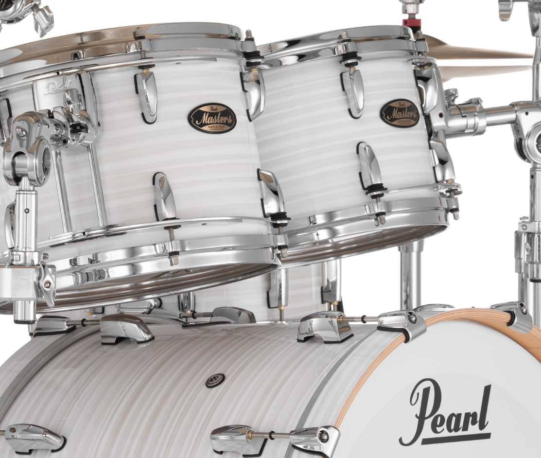 Pearl Masters Maple Gum 4 Piece Shell Pack Featuring 22"x18", 16"x16", 12"x9", 10"x8" Drums in White Ice Swirl with R2 Air Tom Suspension System with 7/8" Standard Bracket