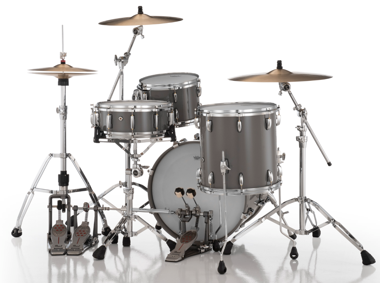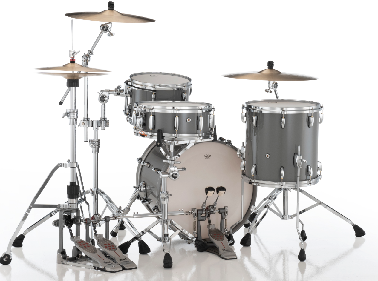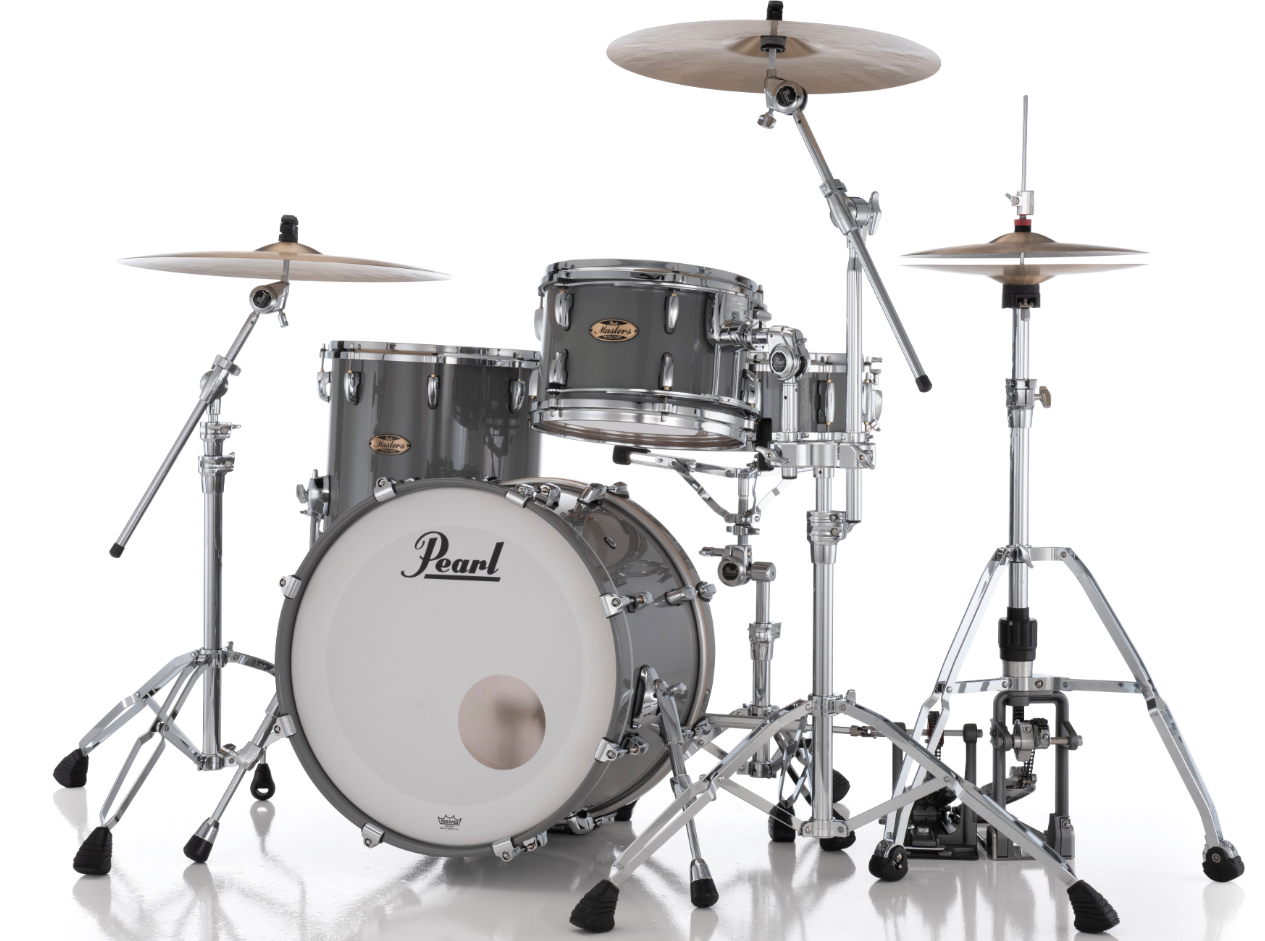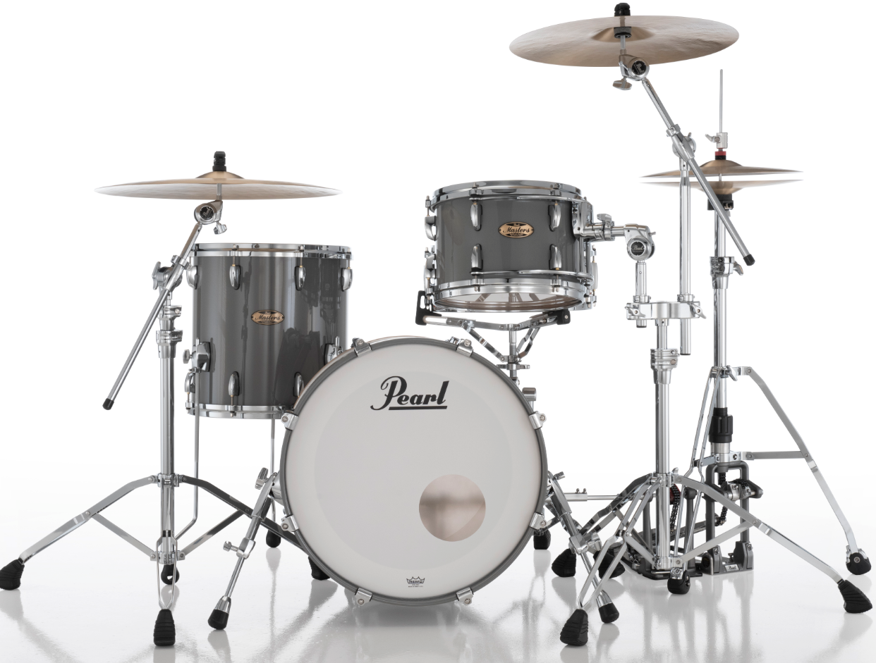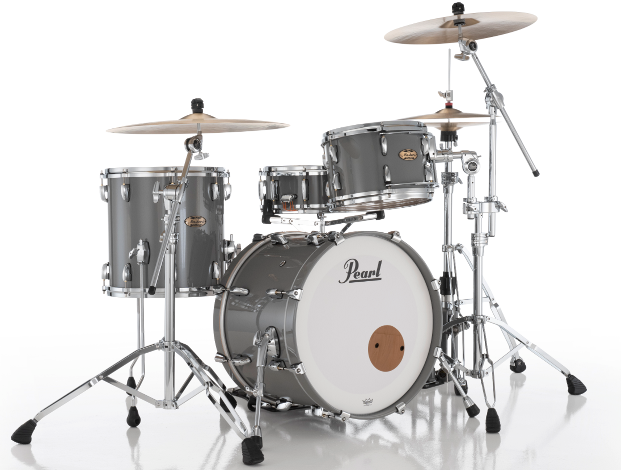 Pearl Masters Maple Pure 3 Piece Shell Pack Featuring 20"x14", 14"x14", 12"x8" Drums in Putty Grey with R2 Air Tom Suspension System with 7/8" Standard Bracket