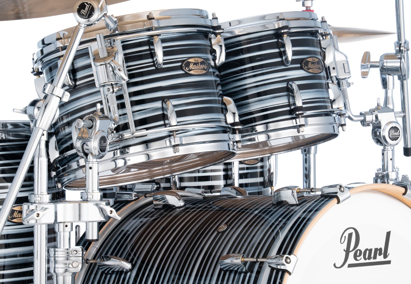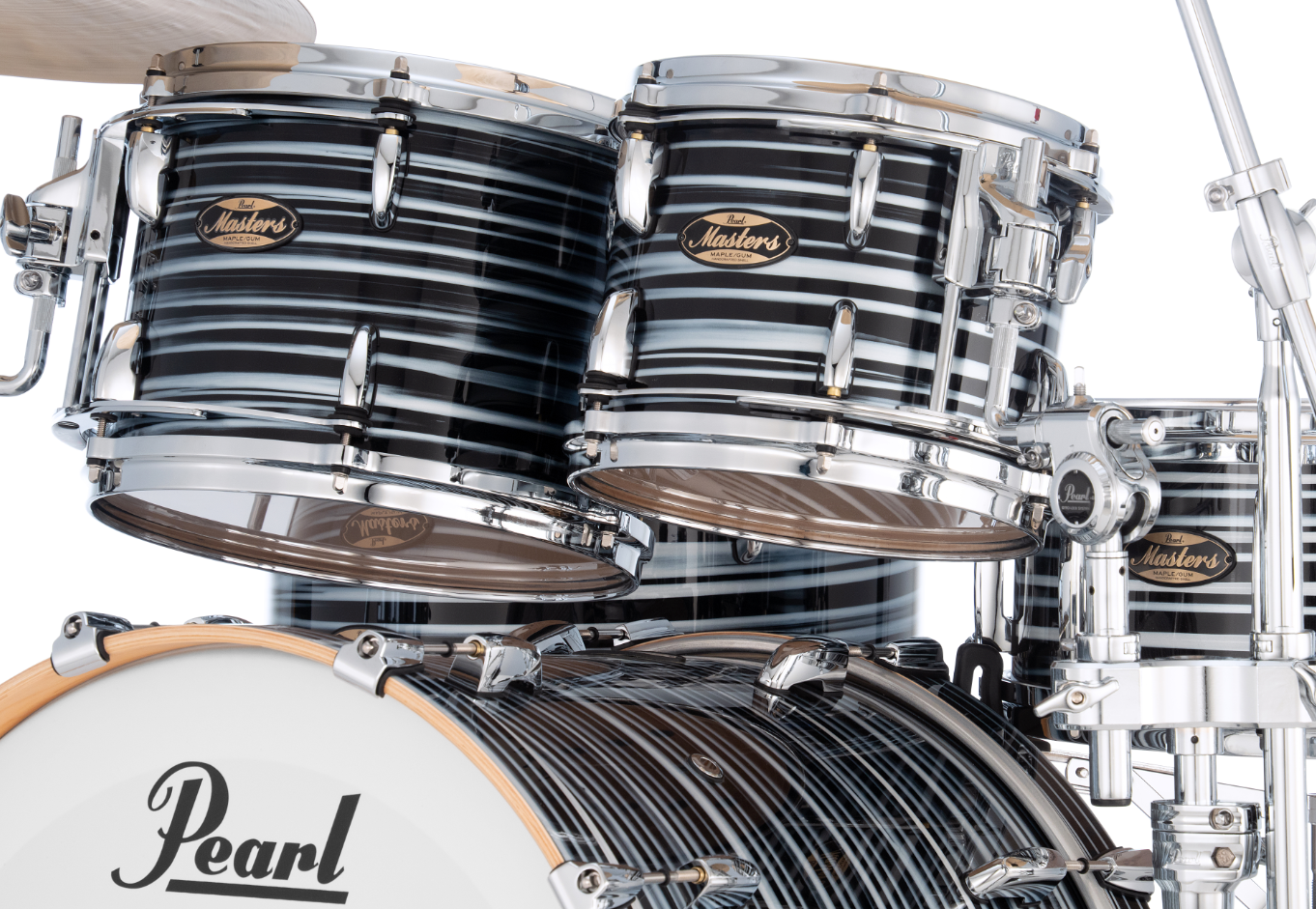 Pearl Masters Maple Pure 4 Piece Shell Pack Featuring 22"x18", 16"x16", 12"x9", 10"x8" Drums in Black Oyster Swirl with R2 Air Tom Suspension System with 7/8" Standard Bracket
