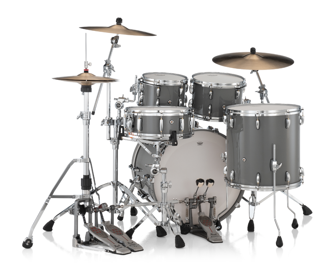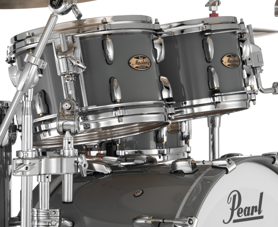 Pearl Masters Maple Pure 4 Piece Shell Pack Featuring 22"x16", 16"x16", 12"x8", 10"x7" Drums in Putty Grey with R2 Air Tom Suspension System and a 12mm Gyrolock-L Bracket