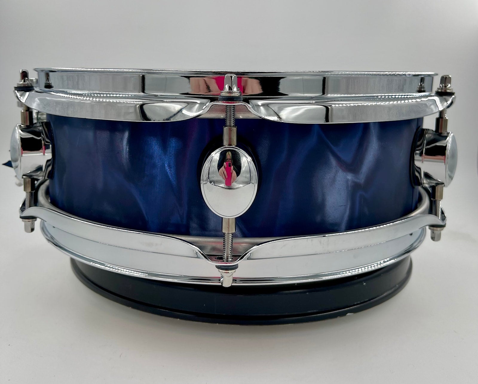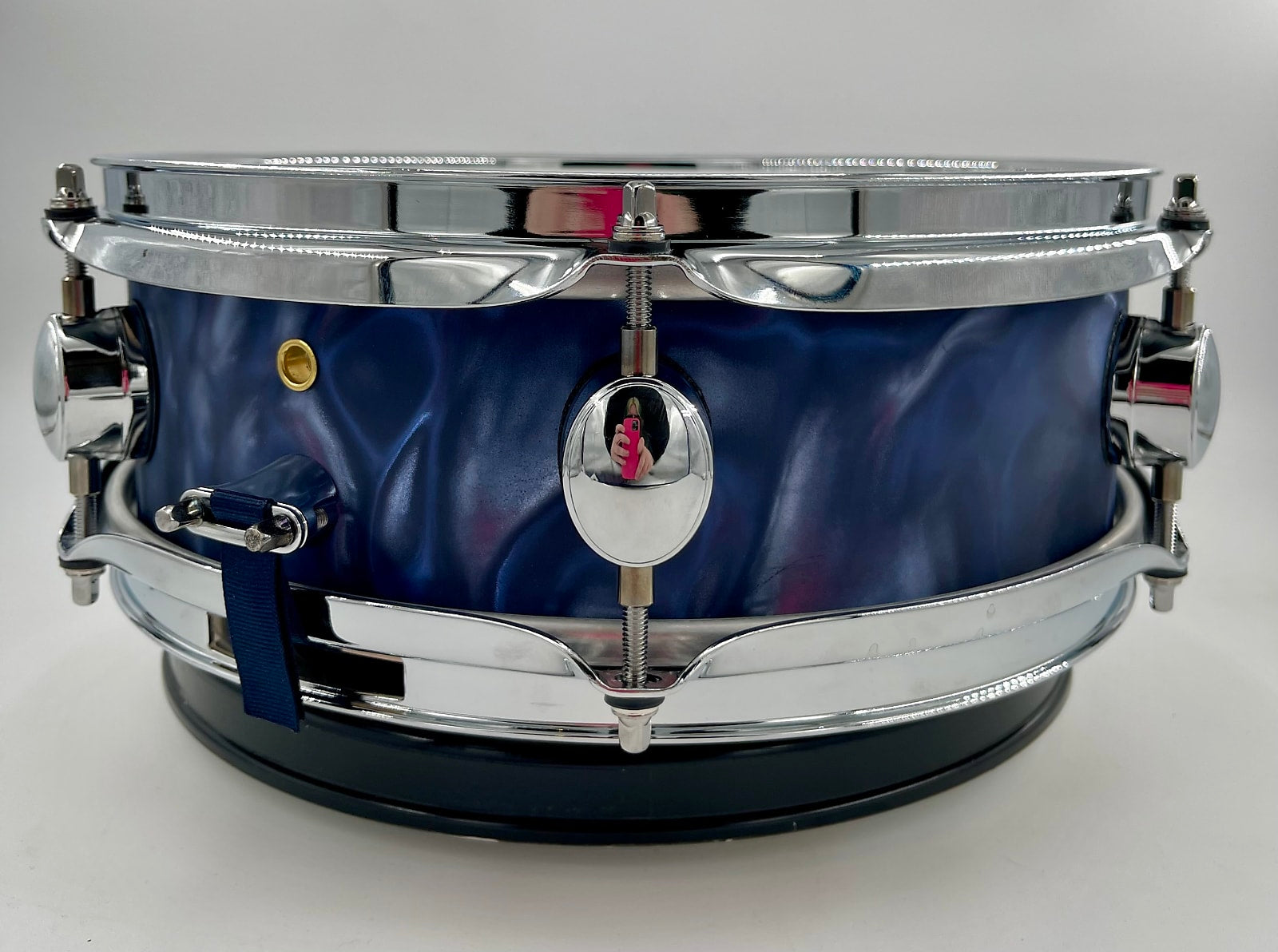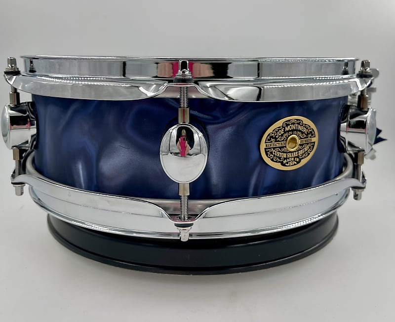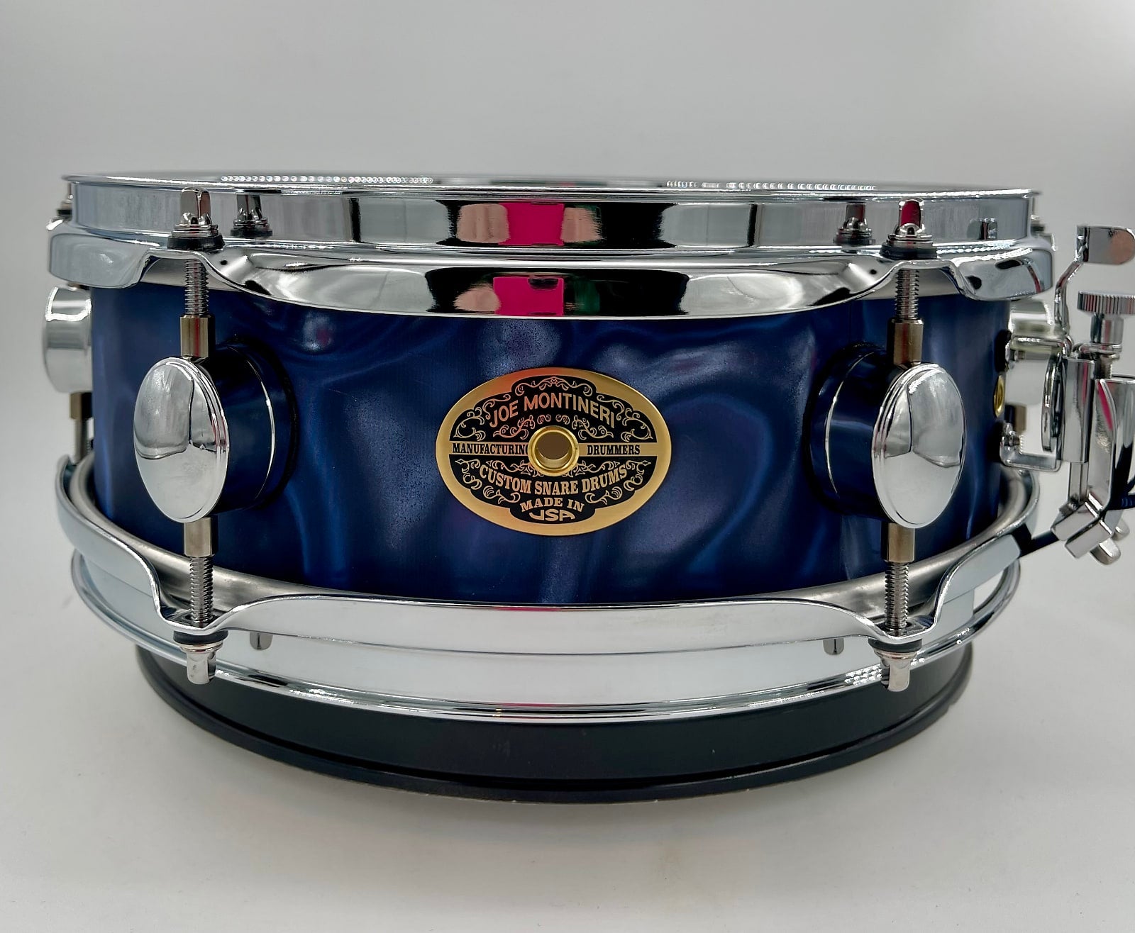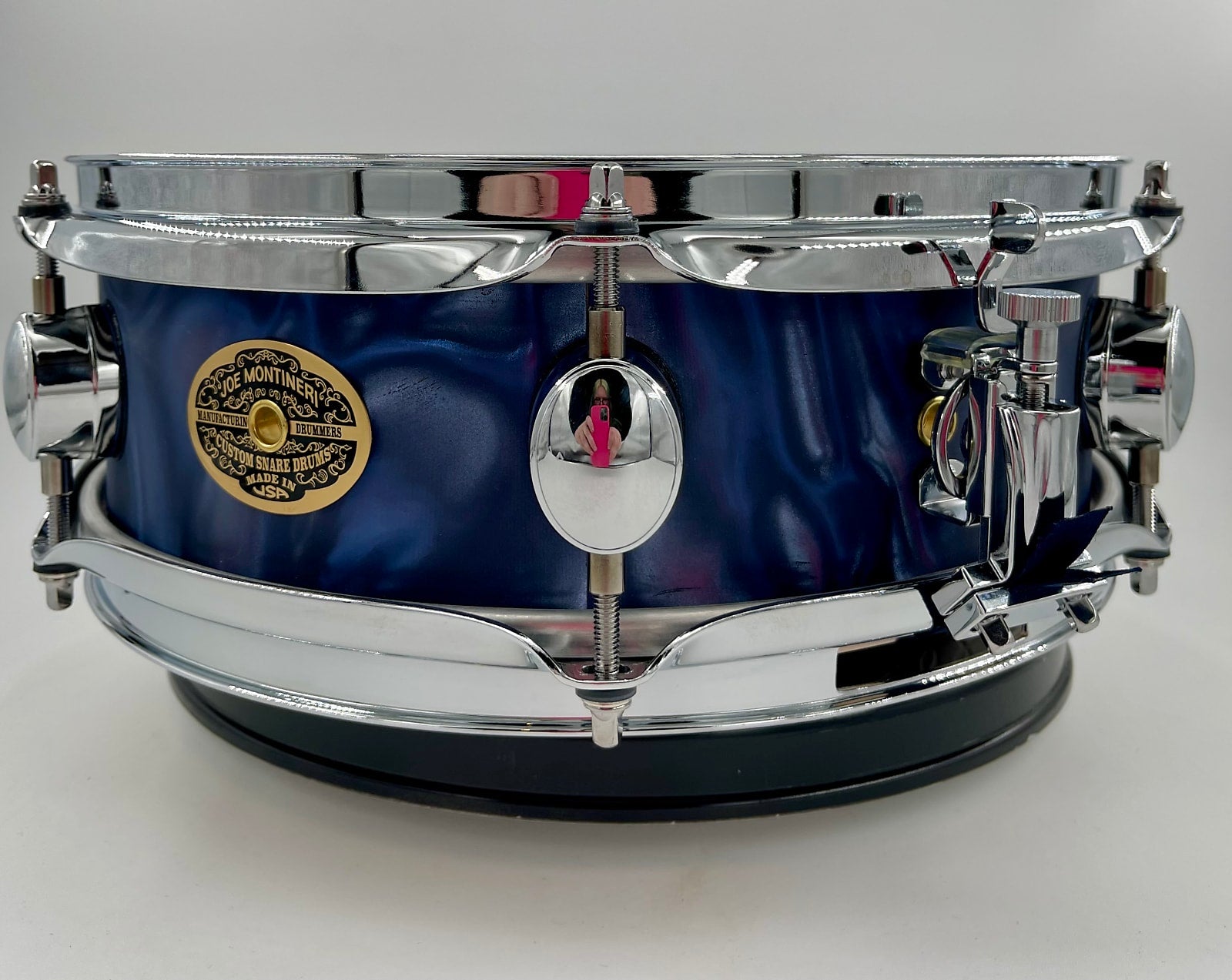 All drums by Montineri Drum Company are custom master-crafted. This 12"x4" snare is made from 10-ply Maple and wrapped in a brand new beautiful Blue Satin Flame wrap. She sounds just as good as she looks.