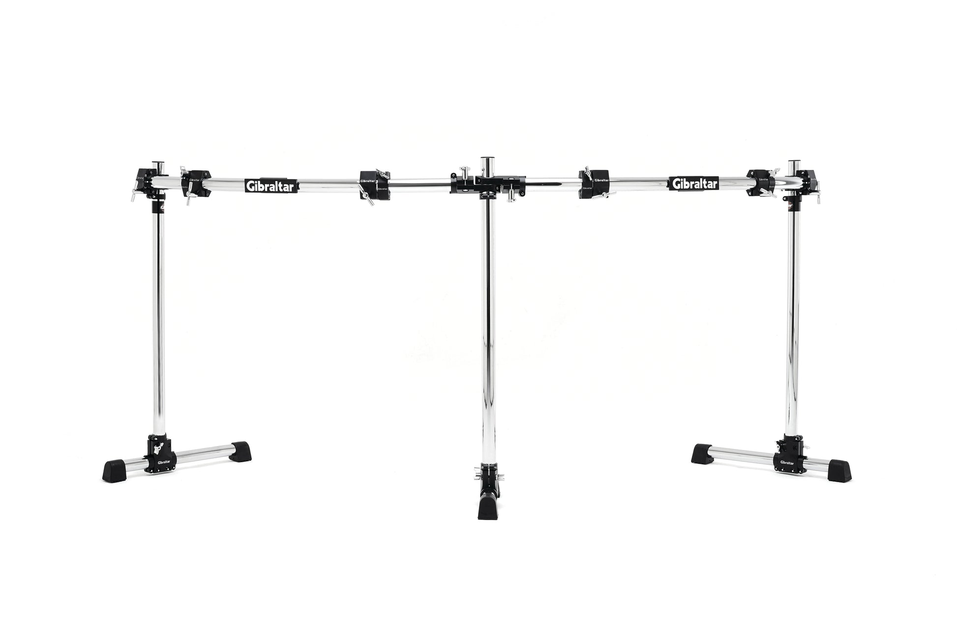 The GRS-850DBL reduces the amount of space required for double bass kits, while accommodating up to six toms and eight cymbals. It also can be used as single bass rack with a side extension. · Holds up to 6 toms and 8 cymbals · The GRS-850DBL also makes a great single-bass rack with side extension · System Includes: (2) GRSTLA T-leg assemblies, (1) GRSMTLA mini T-leg assembly, (3) 36 inch. vertical bars, (2) 40 inch. curved horizontal bars, (4) GRSMC multi clamps, (4) GRSHML hinged memory locks, (10) GPRML memory locks, (2) GRSRA right angle clamps, (2) GRSSRA stackable right angle clamps, (1) GPR-LOGO badge. · Easy set up and break down.