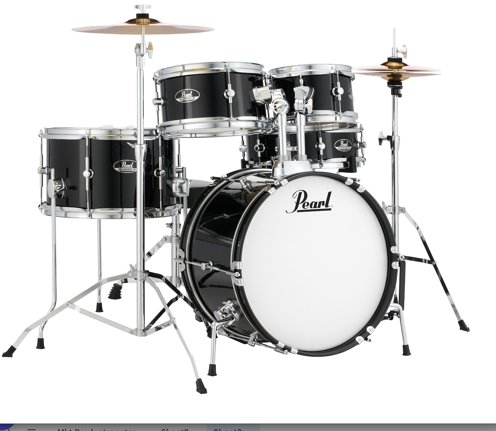 Pearl Roadshow Jr. 5-Piece Shell Pack Featuring 16"x10", 13"x8", 10"x5.5", 8"x5", 12"x4" Drums in Jet Black