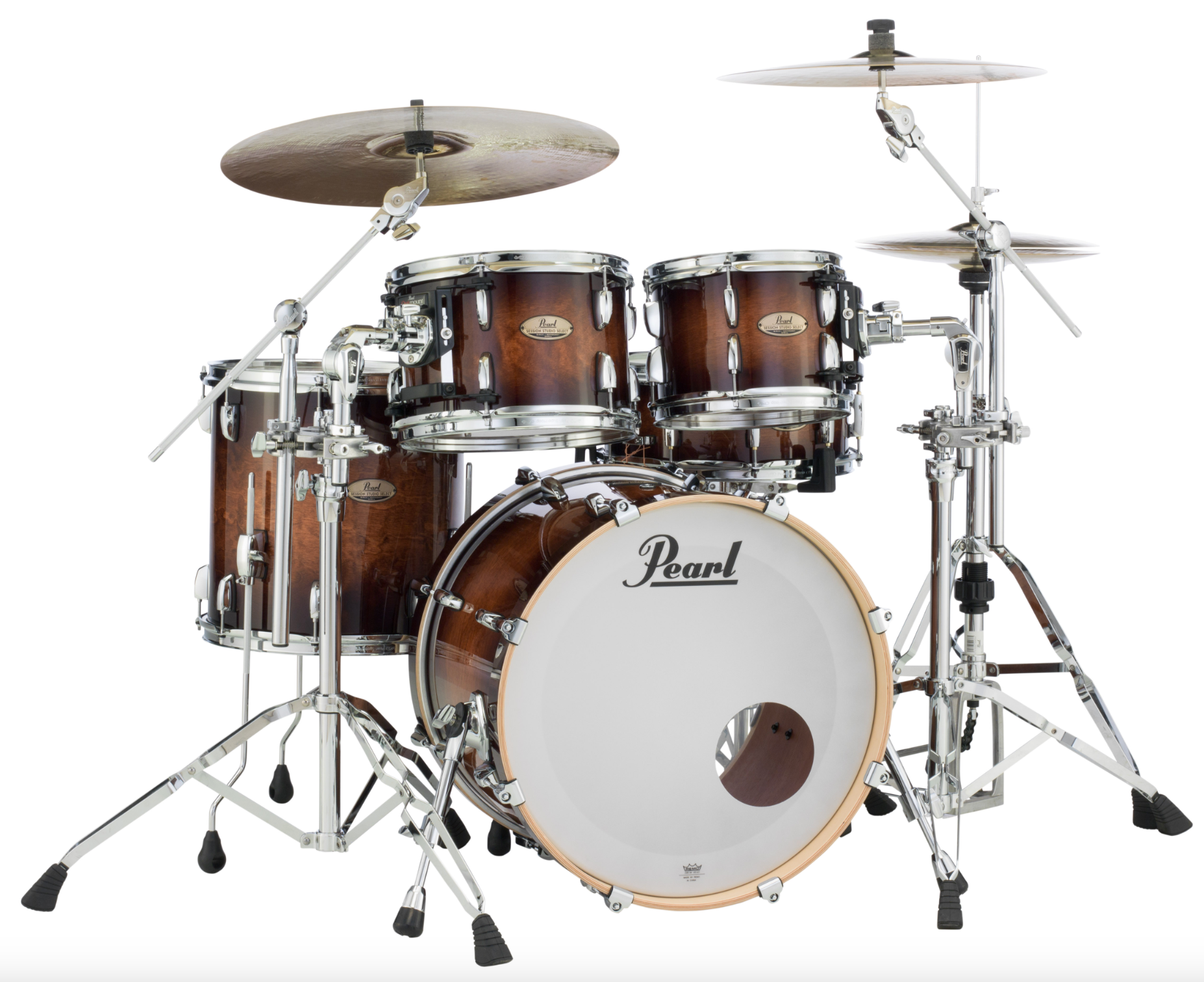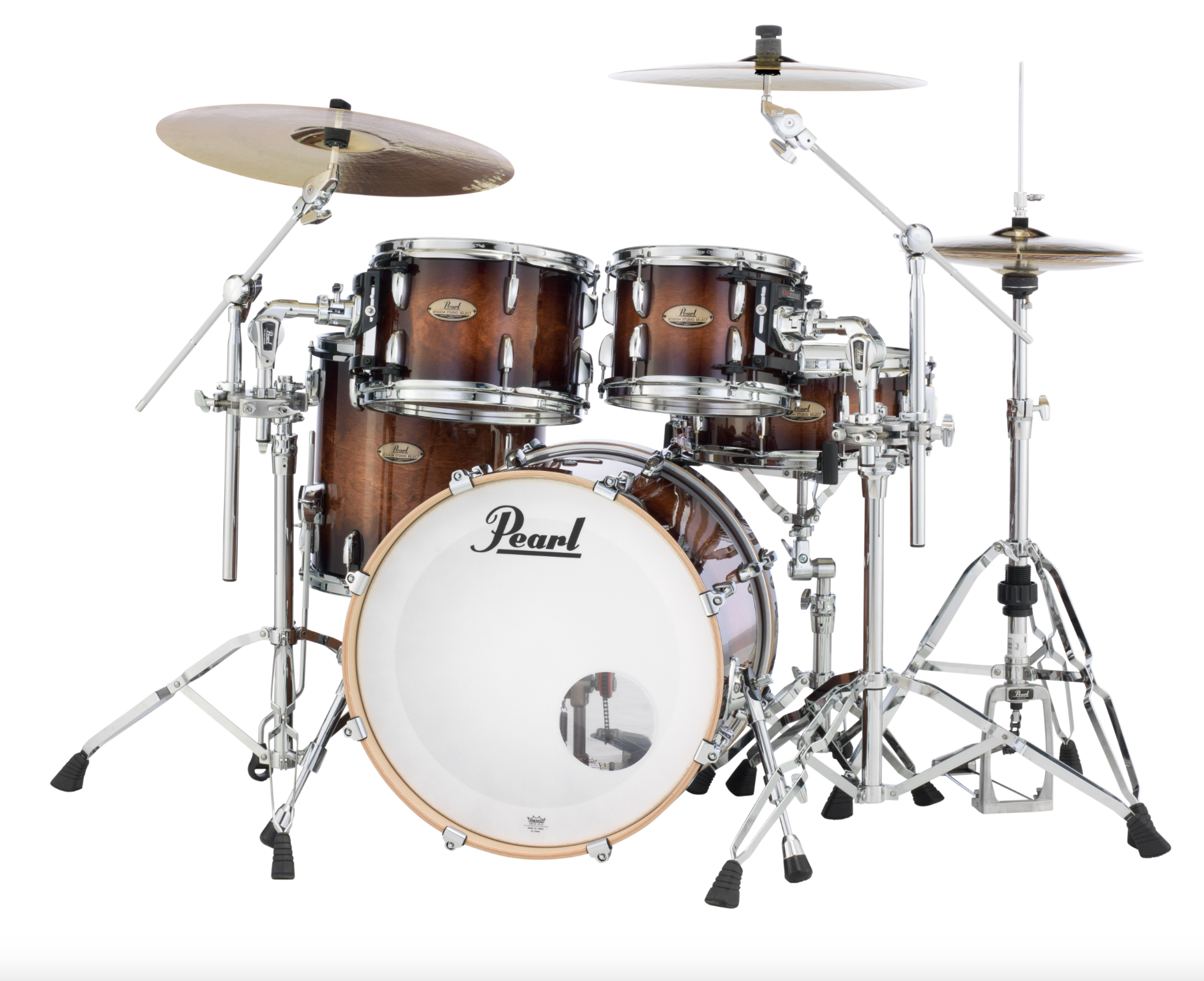 Pearl Session Studio Select 4-Piece Shell Pack Featuring 10"x7", 12"x8", 14"x14", 20"x14" Drums in Gloss Barnwood Brown with Opti-Loc Three-Point Isolation Mount