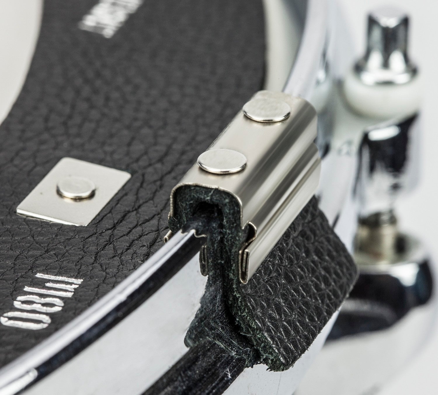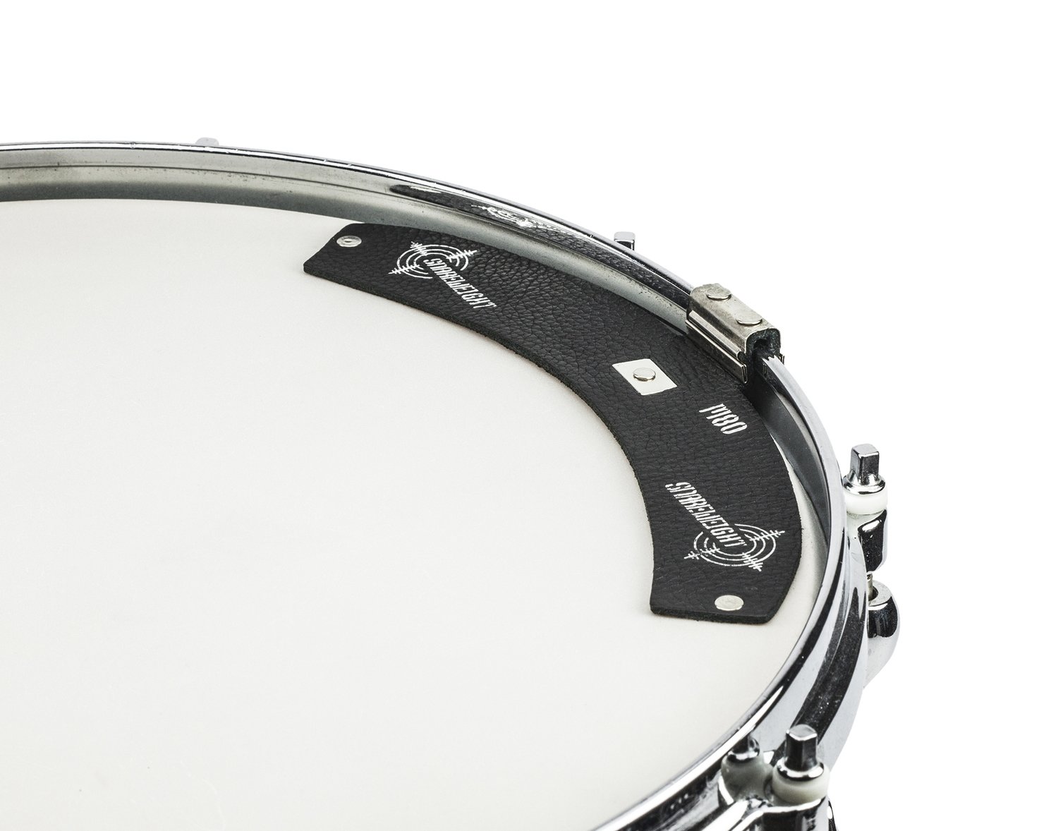 The M80 is engineered to control the resonance without sacrificing the brightness of the drum. One M80 has 4 different dampening settings: mild, medium, heavy and off. Remember the M80 fits any size drum;(8",9,10,12,13,14,16,18, etc.) It also presents some weight on the head (more than tape, plastic etc) which helps shorten the length of ringing. Dampen in a snap or disengage even faster with the on/off feature. Works with triple flange hoops, die cast, angel hoops, true hoops, brass hoops, 1/4" wood. Leather thickness does vary between 1.5mm to 2mm.