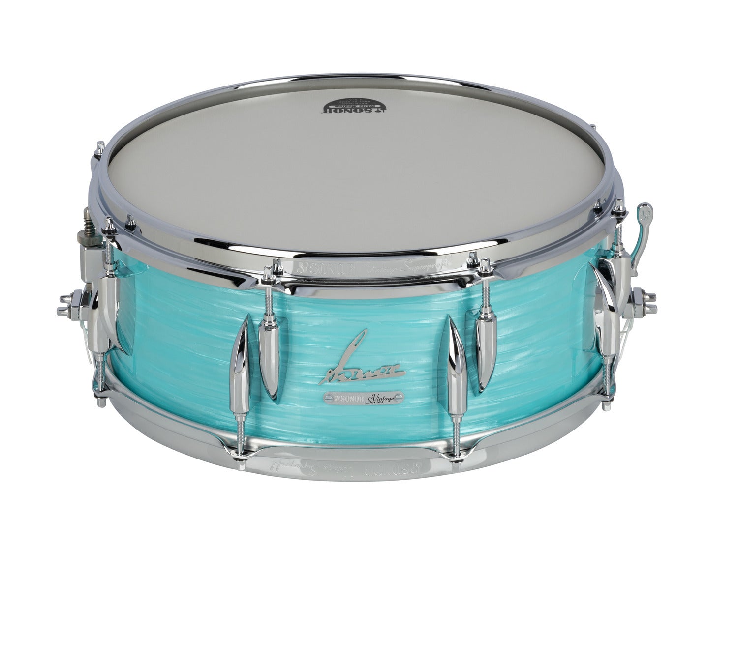 The SONOR team, in cooperation with artists and collectors, worked tirelessly to bring the Vintage Series line of instruments as close as possible to the look, feel and sound of its predecessor the Teardrop drums. SONOR then combined its knowledge of modern drum building with the look and sound of vintage drums to create an instrument that will hold up to today's modern playing.Utilizing rounded bearing edges on all drums, the VINTAGE Series represents the return of the 'old SONOR sound' into its product line. SONOR introduced the 45 degree bearing edge in 1975, which is still in use today on all SQ2, Prolite, and Force series drums. With the addition of the Vintage Series, drummers will have access to a complete palette of sounds that is uniquely SONOR. All drums are constructed from 9‐ply / 6 mm cross laminated tension free (CLTF) Beech Shells. Snares, Toms, and Floor Toms come with the redesigned original 2.3 mm triple flanged steel "Superprofil" hoop from the 1950s. All SONOR lugs are equipped with the patented TuneSafe, which prevents the tension rods from loosening. Bass Drums come with Classic, Vintage-Style Claws with classic design tuning wing screws. Tom Toms / Floor Toms come with Ambassador coated batter, Ambassador clear resonant. Snare Drums come with Ambassador coated batter, Ambassador snare clear resonant. Bass Drums 18" and 20" come with Powerstroke3 coated batter, 22" and 24" come with Powerstroke3 Black Dot batter. All bass drums come with Powerstroke3 Fiberskyn resonant heads with the Vintage SONOR script logo.